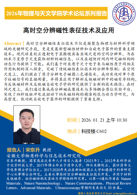 摘要:高时空分辨磁性表征技术不仅是凝聚态物理与材料科学领域的关键研究手段,更是发展新型磁性材料和自旋电子器件的重要支撑技术。现代球差校正透射电子显...