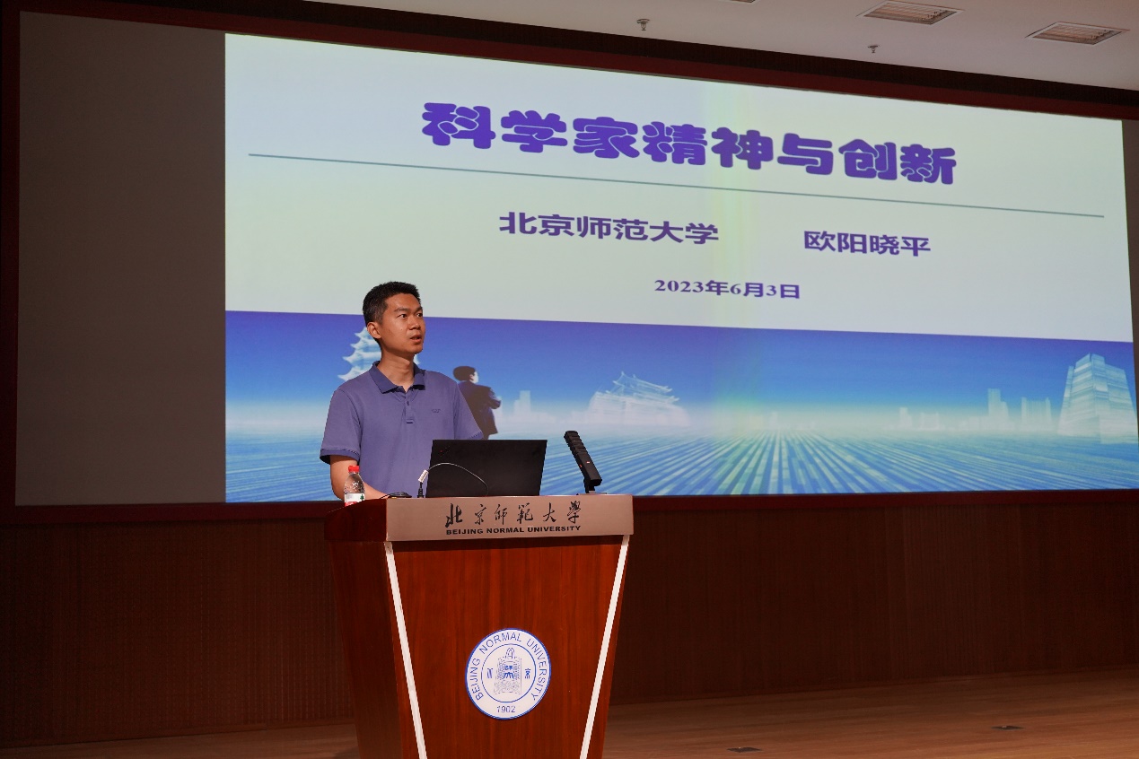 为庆祝第七个全国科技工作者日,大力弘扬科家精神,20236月3日,物理学系主办、《大学物理》期刊协办了以“点亮精神火炬 放飞科学梦想”为主题全国科技工作者日专场京师物理科普大讲坛暨小小科学家培育基地首场活动特别邀请中国工程院院士欧阳晓平做题为“科学家精神和创新”的主旨报告,加强青少年的思想政治引领让青年学生近距离感受科学家的学术素养家国情怀,锤炼创新精神的同时坚定科学信仰,以科普教育助力新时代人才强国战略