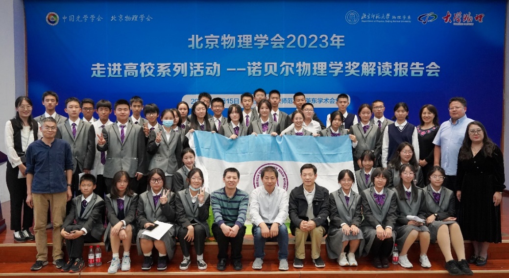 北京物理学会副秘书长秦晓文老师在致辞中指出,诺贝尔物理学奖是全球科学界的最高荣誉,见证了人类在物理学领域的辉煌成就。举办诺贝尔物理学奖解读报告会,旨在帮助科技工作者、物理教师、青少年学生更好的了解物理学的最新进展,激发广大青少年对科学的热爱和追求。历届解读报告会的成功举办,离不开北京地区高校和中学的大力支持。希望大家共同努力,为培养更多具有创新精神的青年学生,推动科技创新,实现人类梦想而努力奋斗。