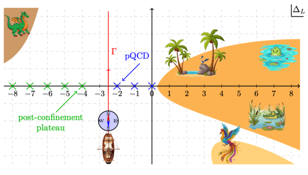 为了从理论上解释这一现象,研究团队应用了光线算符乘积展开(light-ray OPE)方法 ,发展出了一套形式化体系,成功描述了 EEC 在输入能量 Q 下,于强子化过渡区和后禁闭区的标度演化规律 。研究明确证明,在后禁闭区,其量子标度行为由自旋 J=5 的 Dokshitzer–Gribov–Lipatov–Altarelli–Parisi反常量纲所决定。