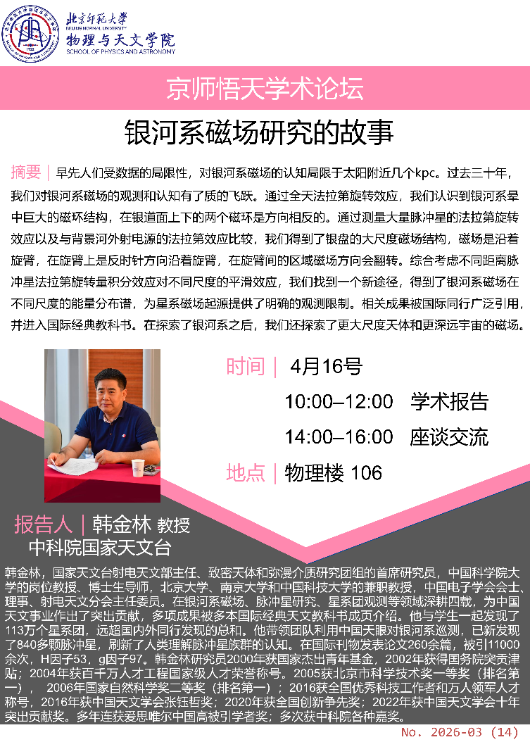 我们诚挚邀请广大师生参加京师悟天学术论坛2026年第三期(总第14期)学术报告!