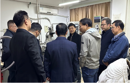 物理与天文学院院长董国轩和学校科技处副处长杨晓帆首先向验收组专家致以热烈欢迎和诚挚感谢。随后,实验室建设负责人郭文安作实验室建设工作总结报告。实验室紧密围绕国家在量子科技与信息材料等领域的重大战略需求,构建了理论、实验与计算相结合的研究体系,系统开展了从极端尺度基础物理、微纳结构前沿物态到跨尺度集体行为的多层次创新研究,取得了一系列具有国际影响力的原创成果。实验室凝聚并形成了一支结构合理、富有创新能力的科研团队,人才引进与培养成效显著,广泛开展高水平国际合作与交流,初步建成在国内外具有重要影响力的自旋物理研究高地。随后,专家组还听取了各研究方向带头人的代表性成果介绍,并实地考察了位于科技楼的实验室大型先进实验仪器设备。
