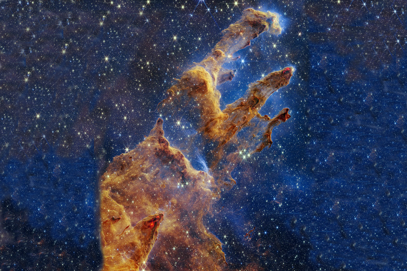 近日,北京师范大学物理与天文学院高健教授团队与云南大学陈丙秋教授团队利用韦布空间望远镜(JWST)的超高清观测数据,在著名的“创生之柱”中发现了大量新生恒星,并为“触发式恒星形成”理论提供了重要的观测证据。相关成果以“Evidence of Triggered Star Formation in the Pillars of Creation from JWST Observations”为题于2025年10月21日在国际顶级天文学术期刊《自然·天文》在线发表。